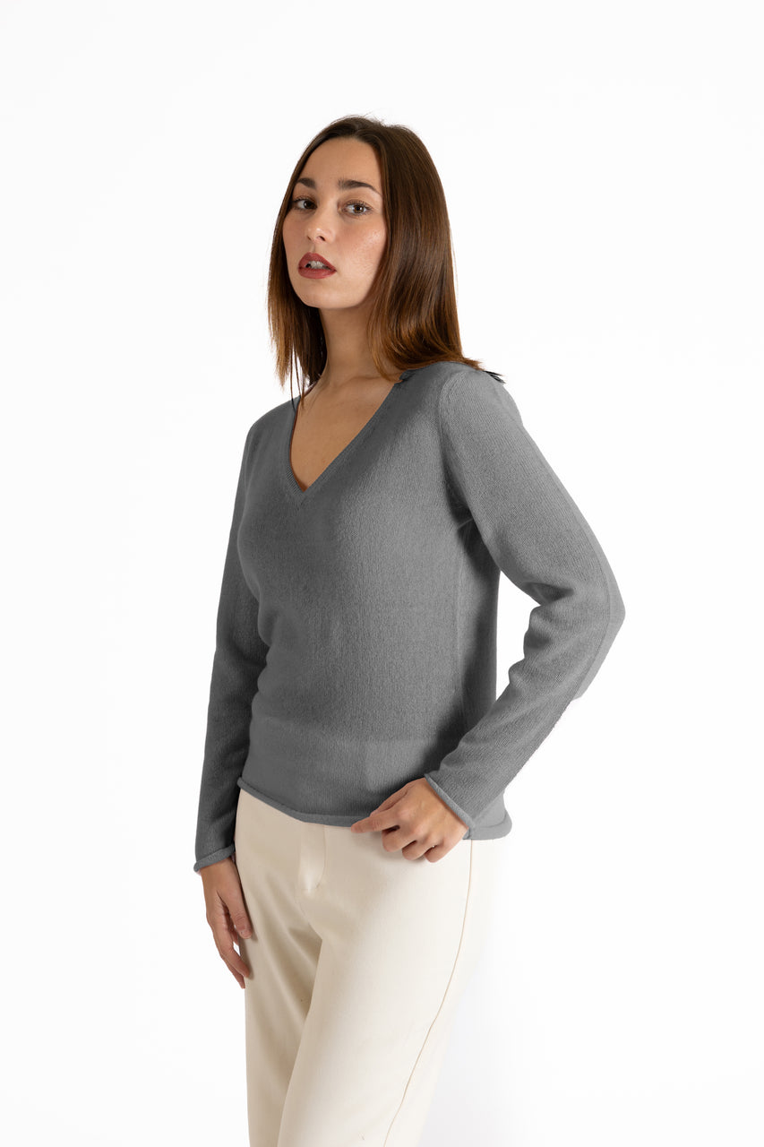 Morbido e soffice, questo scollo V in tessitura  lightweight è un elemento indispensabile del guardaroba, adatto ad ogni occasione ed abbinamento.